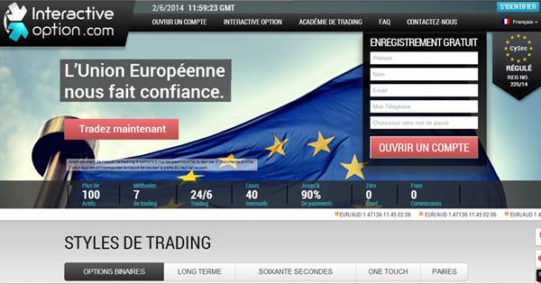 Créé en 2013, Interactive Option est un broker assez récent. Et pourtant, ce courtier en ligne a rapidement acquis une notoriété sur le marché, grâce à son sérieux et à la qualité de ses services. Les autorités de contrôle n’ont pas hésité à accorder leur reconnaissance à ce jeune courtier. L’AMF ou Autorité des Marchés Financiers, ainsi que l’ACPR Banque de France l’inscrivent notamment sur leur liste blanche. Interactive Option détient également une licence de la CySEC ou Cyprus Securities and Exchange Commission sous le numéro 225/14 et est aussi conforme à la directive européenne MiFID.